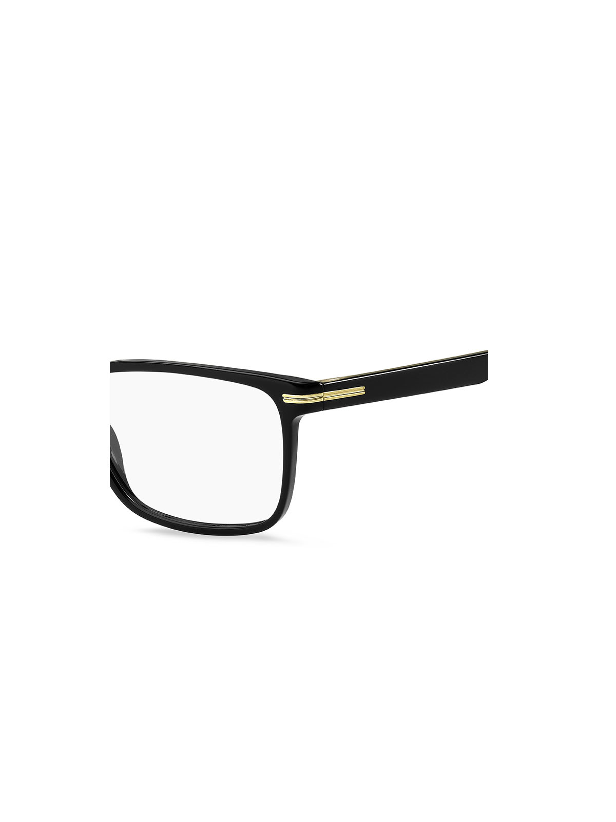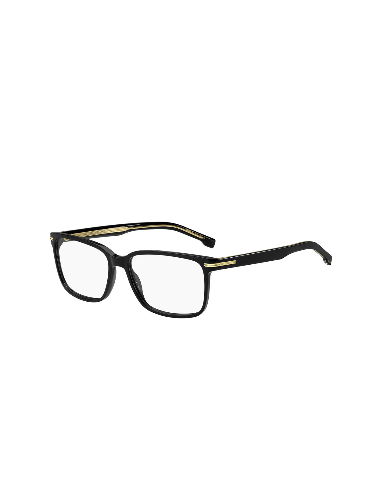 BOSS 1511 807 to męskie oprawki korekcyjne o prostokątnym kształcie i wyrazistych czarnych ramkach. Elegancki wygląd opraw podkreślają złote akcenty na łączeniach ramki i zauszników. Oprawa wykonana została z recyklingowanego tworzywa octanowego - czyli lekkiego i trwałego plastiku. To świetna propozycja dla Panów dbających o ekologiczne podejście do życia.