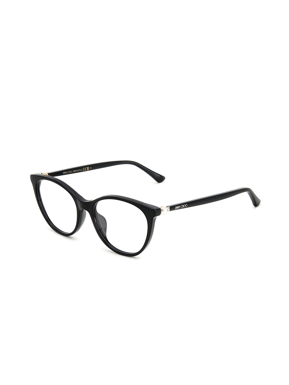 JIMMY CHOO JC378/G 807 to subtelne oprawy damskie w ponadczasowym czarnym kolorze. Wykończone połyskiem oprawki ozdobione są białą perłą. Połączenie metalu i plastiku sprawia, że są trwałe i zarazem lekkie. Koci kształt okularów JIMMY CHOO JC378/G 807 jest niezwykle kobiecy i podkreśla oko.