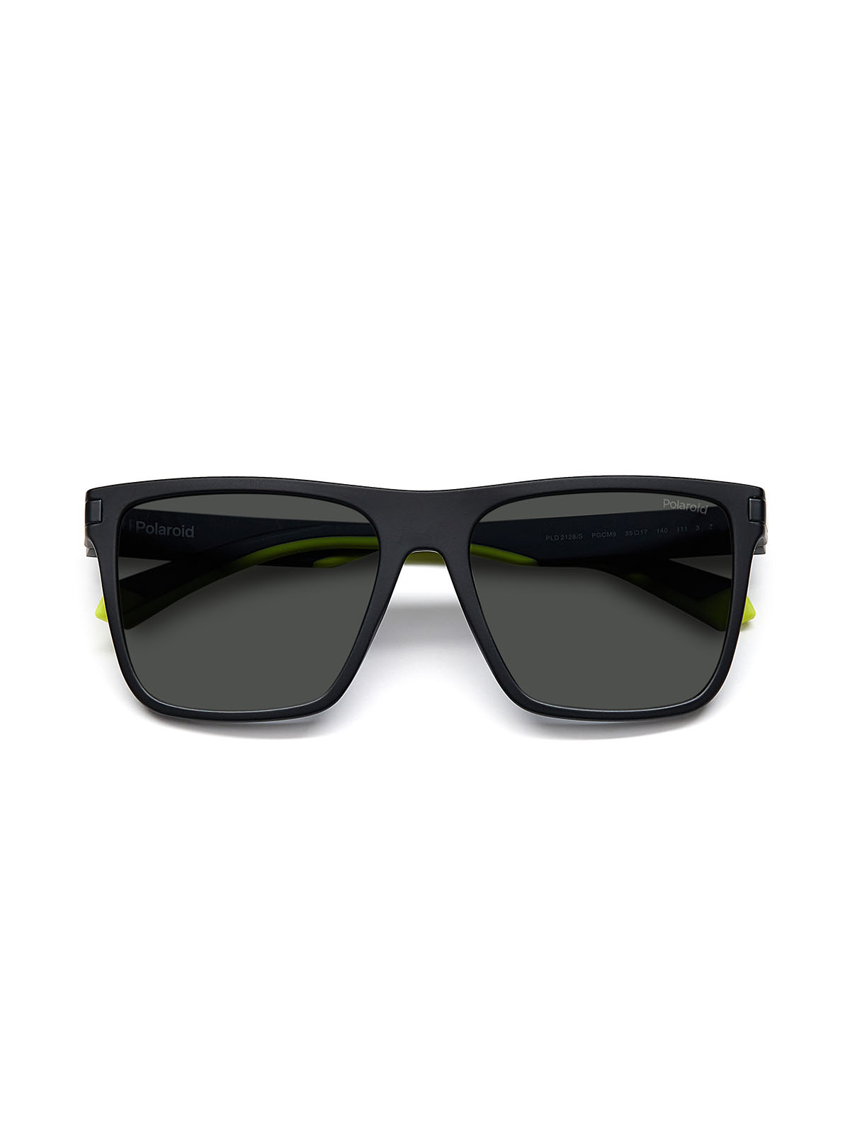 POLAROID PLD2128/S PGC to uniwersalne okulary przeciwsłoneczne dla kobiet i mężczyzn. Kwadratowy kształt opraw pasuje świetnie do każdej twarzy. Model ten posiada polaryzację, dzięki czemu gwarantuje maksymalną ochronę oczu w każdych warunkach. Wykonanie z lekkiego i trwałego materiału - poliwęglanu, zapewnia komfort użytkowania. Klasyczny, czarny kolor, urozmaicony zielonymi akcentami na zausznikach, pasuje do każdej stylizacji.