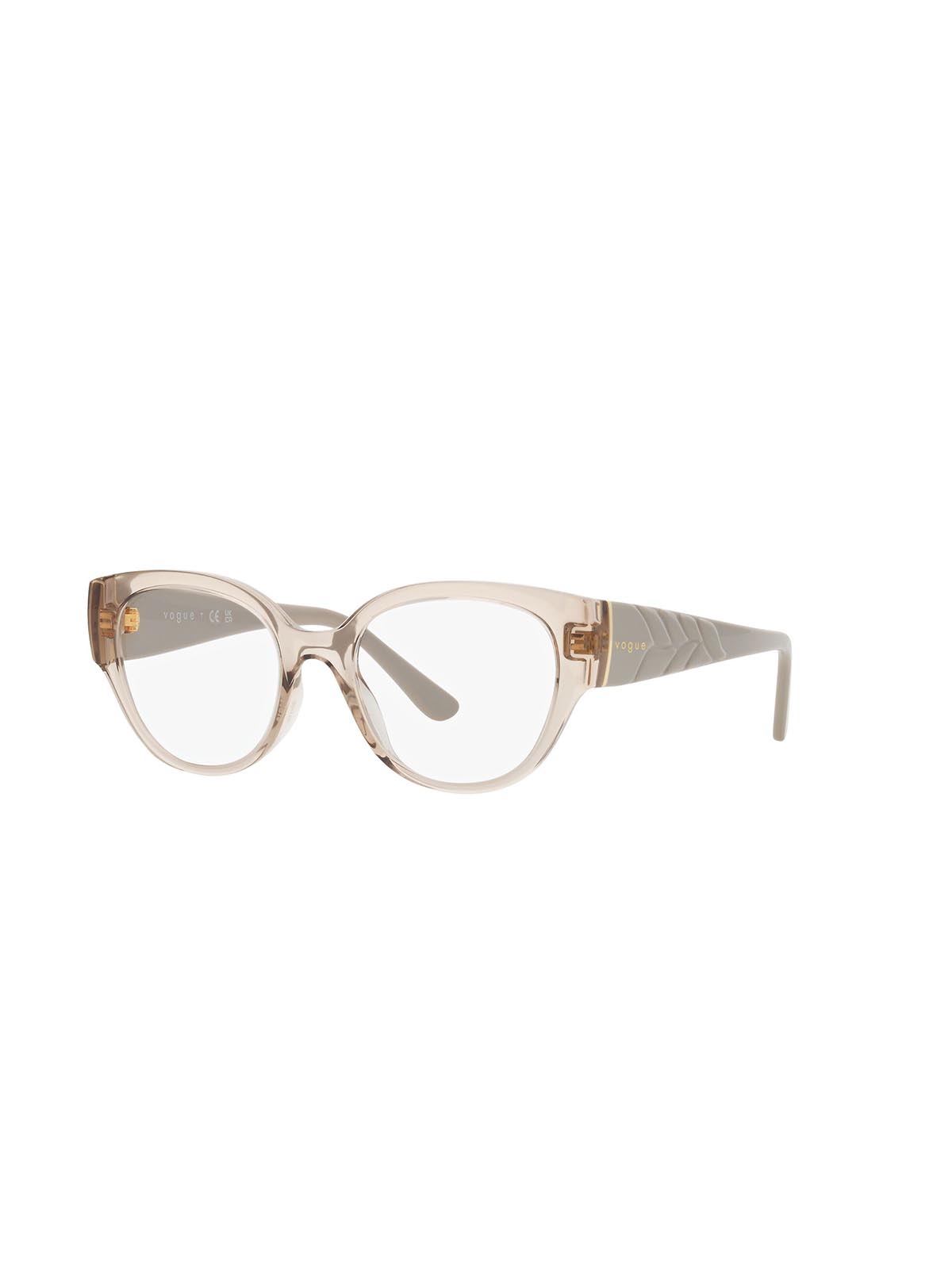 VOGUE 0VO5482 2990 to damskie oprawki korekcyjne o owalnym kształcie i przezroczystych ramkach w kolorze ciepłej szarości. Szerokie zauszniki okularów zdobi roślinny motyw. Oprawa wykonana jest wysokiej jakości tworzywa sztucznego. Całość tworzy subtelne wrażenie i z pewnością przypadnie do gustu kobietom, które stawiają na stylowe i uniwersalne dodatki.